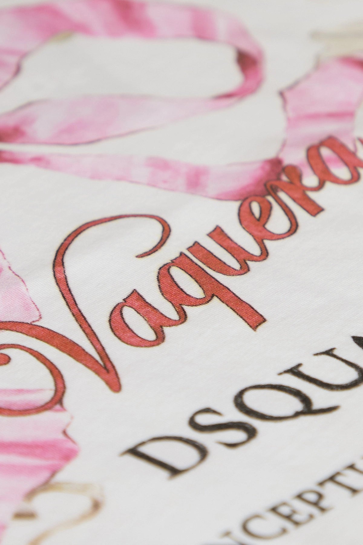 The Dsquared2 Vaquera Ny Doll Tee in jersey featuring a slightly cropped fit with cap sleeves and collaboratve text and logo print at the front.