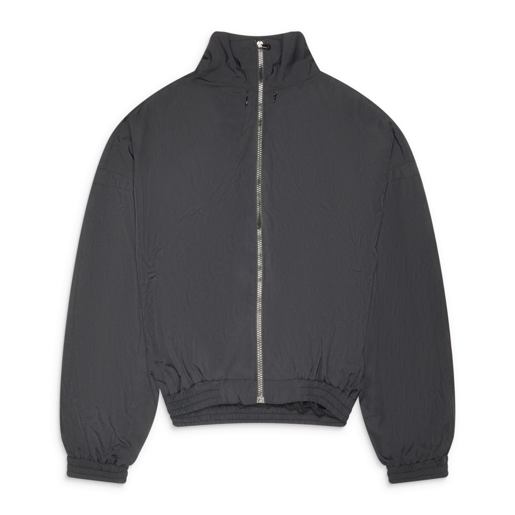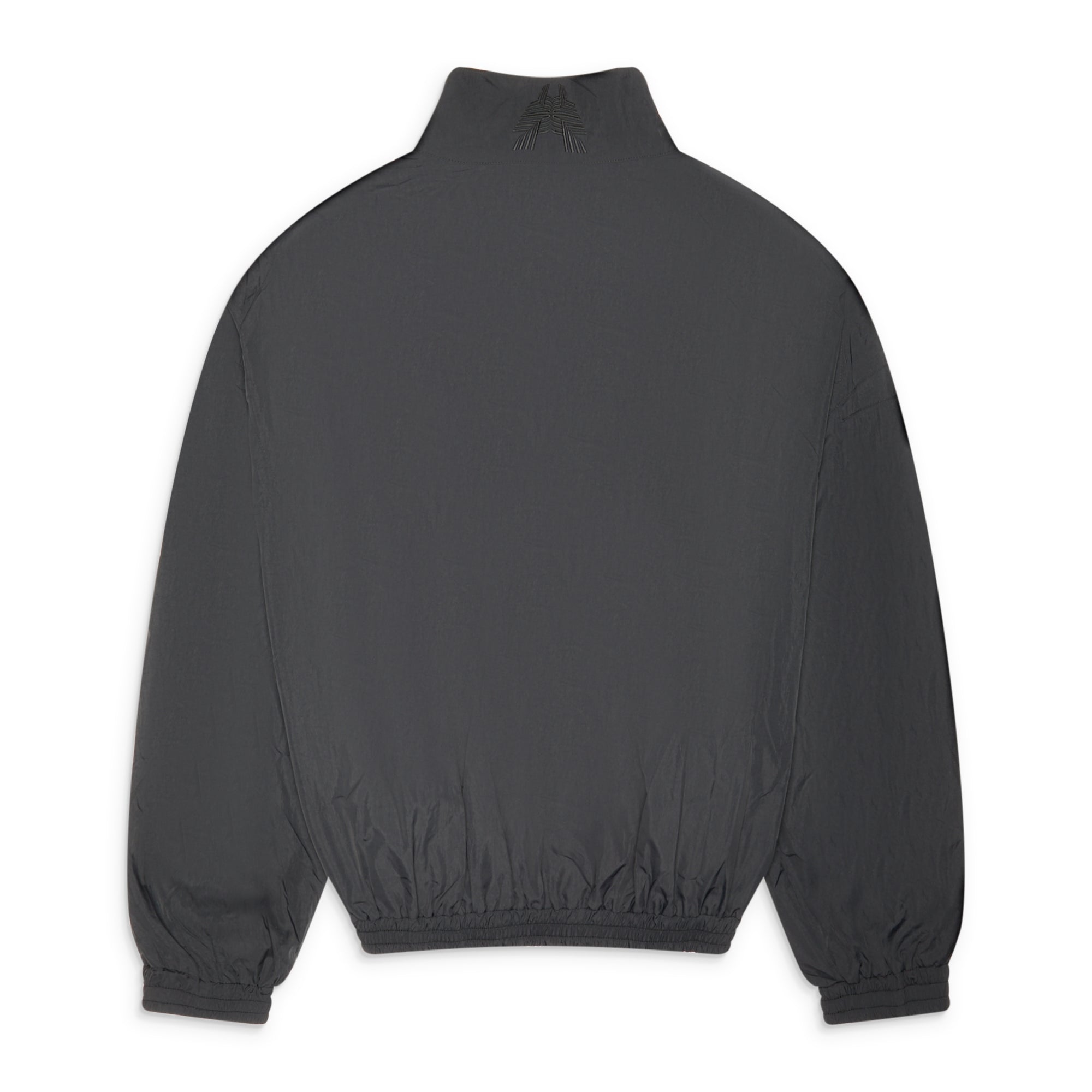 FFFPOSTALSERVICE refines the classic track jacket through proportion and technical finish. Cut in an oversized silhouette, the piece drapes with controlled volume, structured by a lightweight nylon shell and elasticated hem. Subtle seam curvature and chest zip detailing introduce dimension without excess, while mesh lining adds breathability and stretch. Precision hardware throughout keeps the execution sharp—functional, stripped back, and engineered for movement.