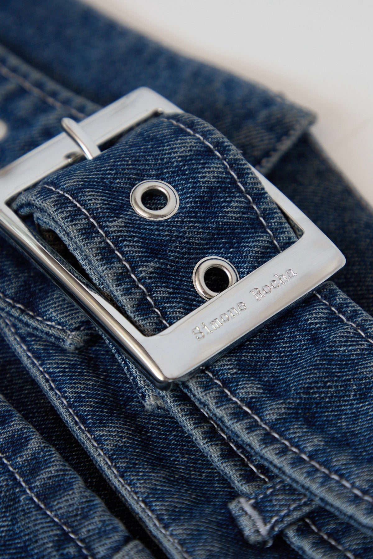Simone Rocha Multi Belt Waist Tail Denim Trucker Jacket W/ Emb Blue