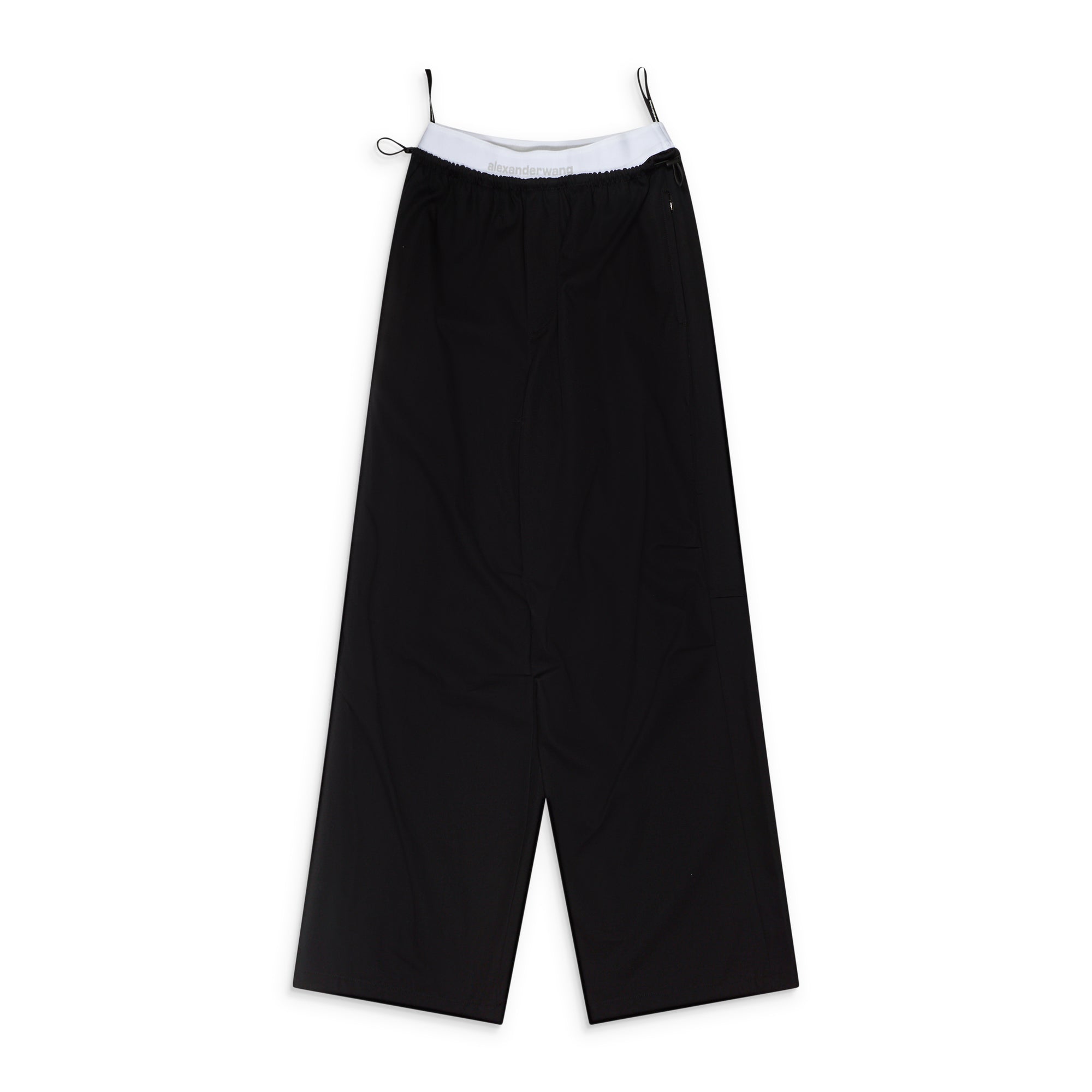 A sculptural trouser silhouette defines the Alexander Wang Logo Elastic Mid-Rise Pant, where pleated knee construction and articulated seams introduce volume through the leg. The exposed logo-elastic waistband adds a signature branded detail, balancing tailored structure with athletic influence.