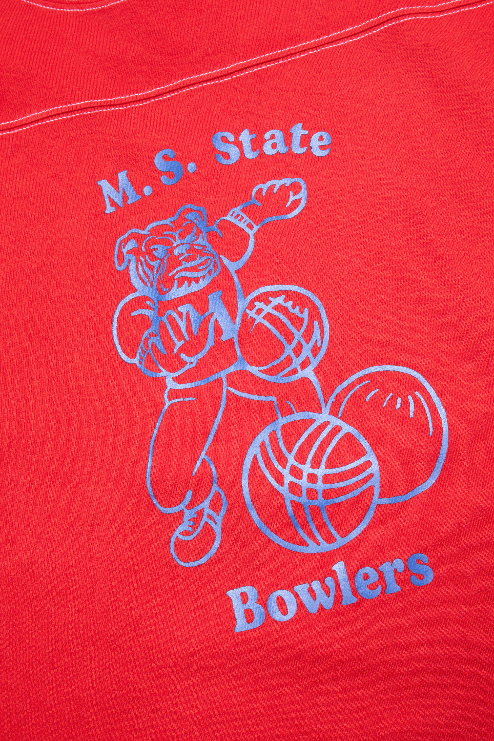 Margiela State T-Shirt Red recalls vintage Americana with a collegiate sports motif at the chest. Contrast stitching reinforces its relaxed cut, amplifying the retro spirit. At the back, the Maison’s signature four stitches appear; the opposite of a label.