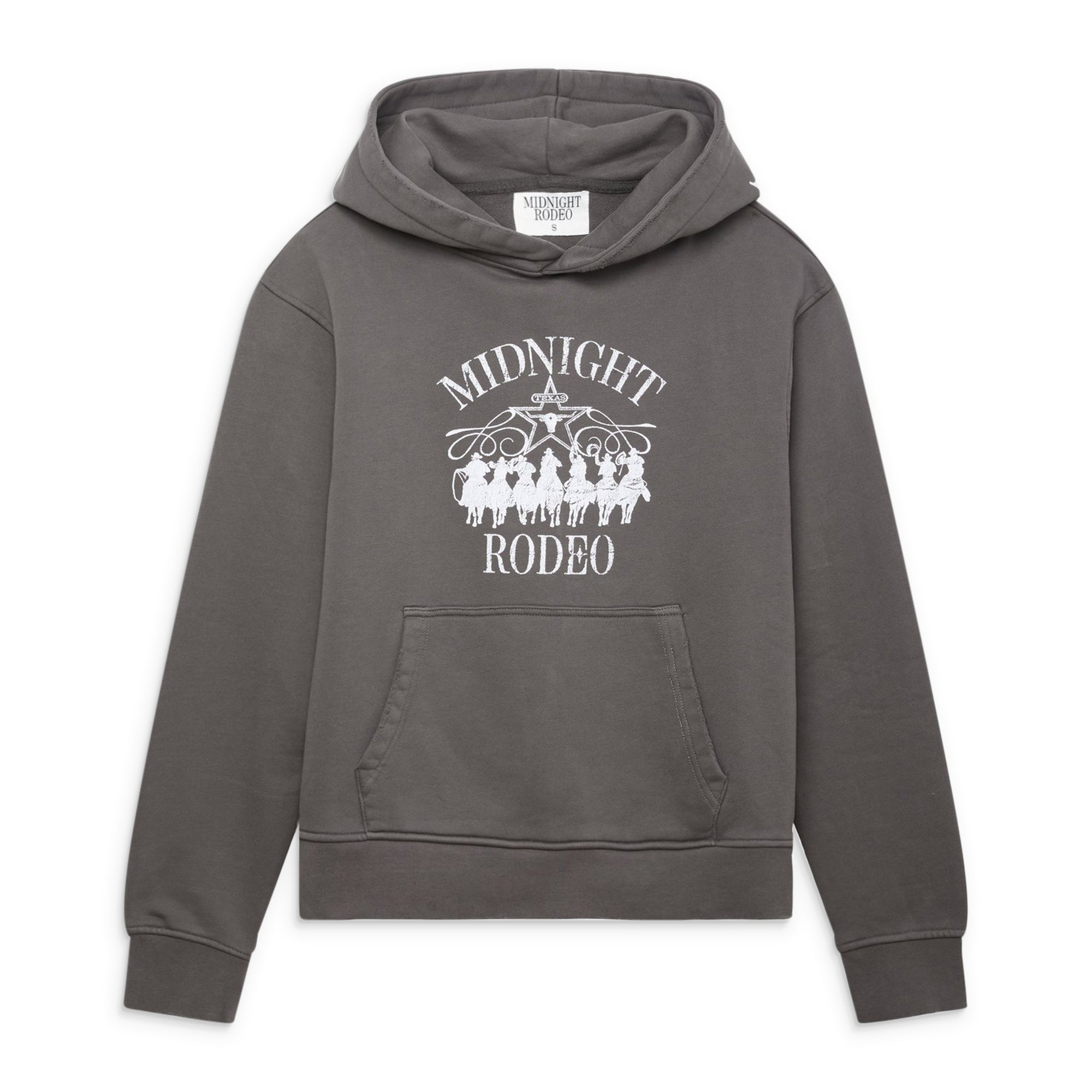 A soft pullover silhouette rendered with a weathered Western-inspired graphic that channels worn-in, nostalgic character. Slightly shrunken proportions and ragged detailing create a lived-in feel, while ribbed trims and a classic kangaroo pocket anchor the structure. Casual ease meets expressive surface texture in a piece built for everyday layering.