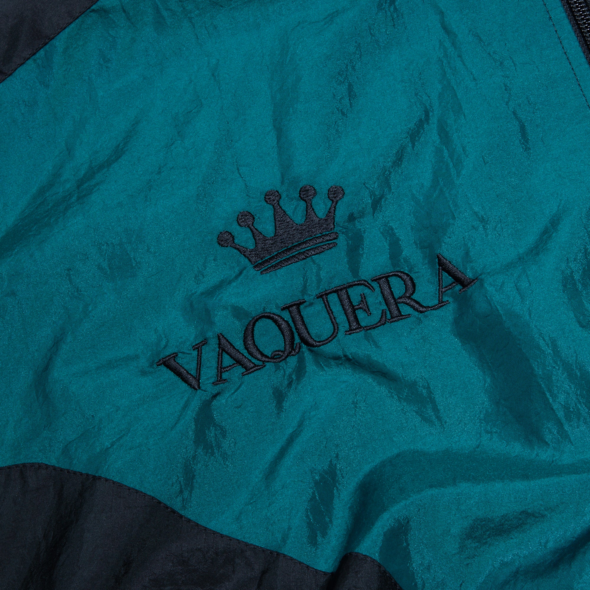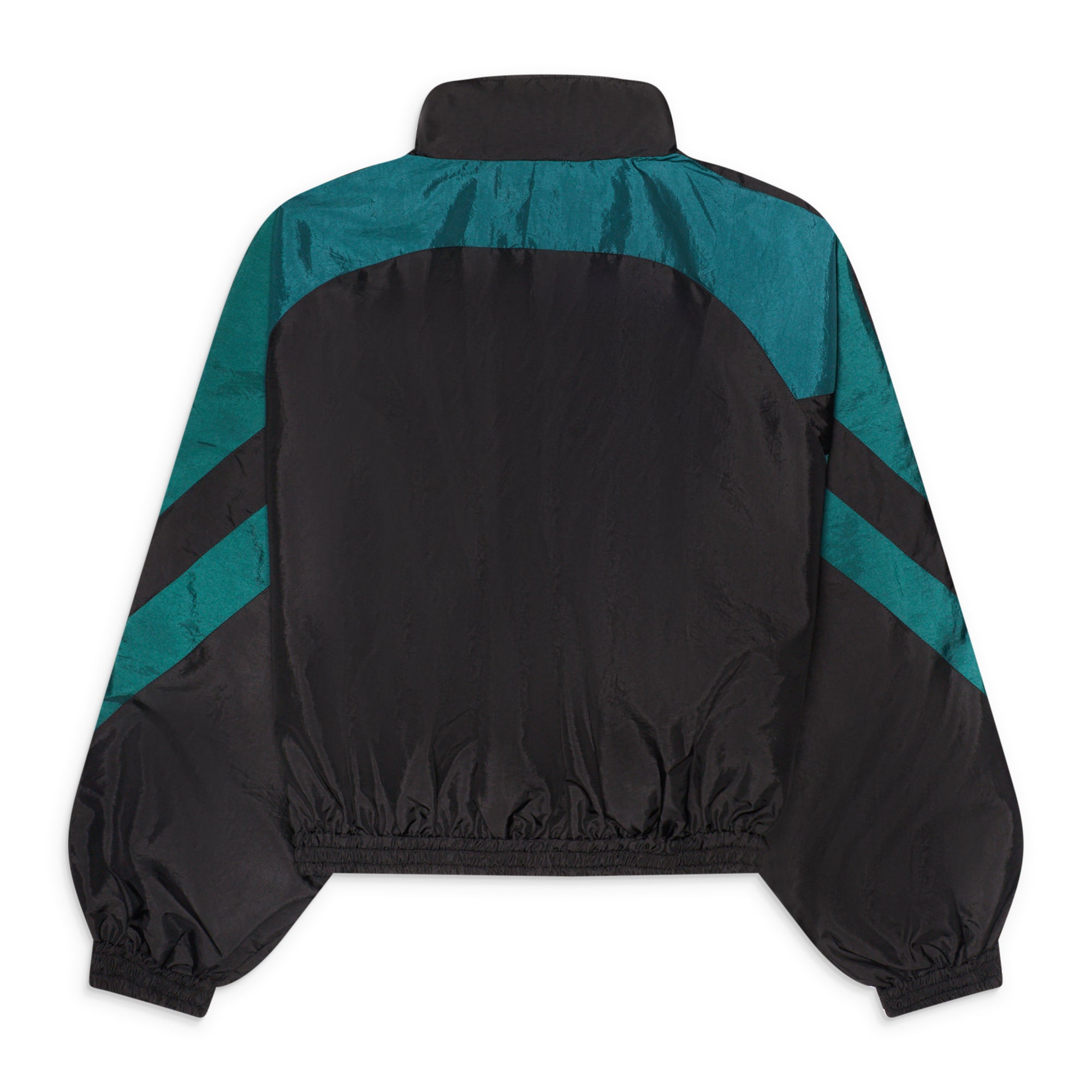 Lightweight paneled windbreaker cut in a cropped silhouette, combining sharp color-blocking with a fluid, technical finish. The voluminous shape and elastic structure create a sculpted, sport-driven profile with Vaquera’s signature edge.