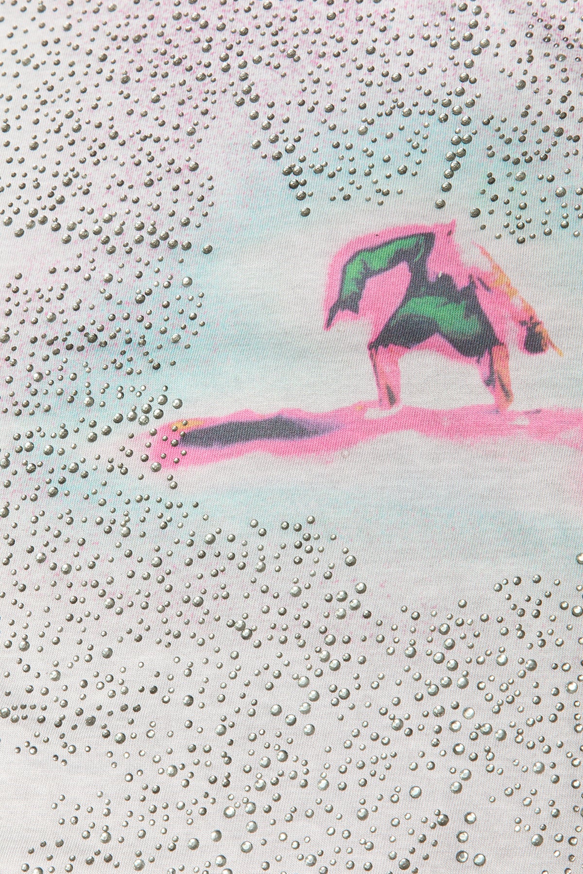 Crew neck T-shirt with short sleeves and a regular fit, crafted from a soft cotton-blend jersey with a burnout wash for a worn-in feel. The front is finished with a sublimation print, elevated by stud detailing for a bold, contemporary edge.