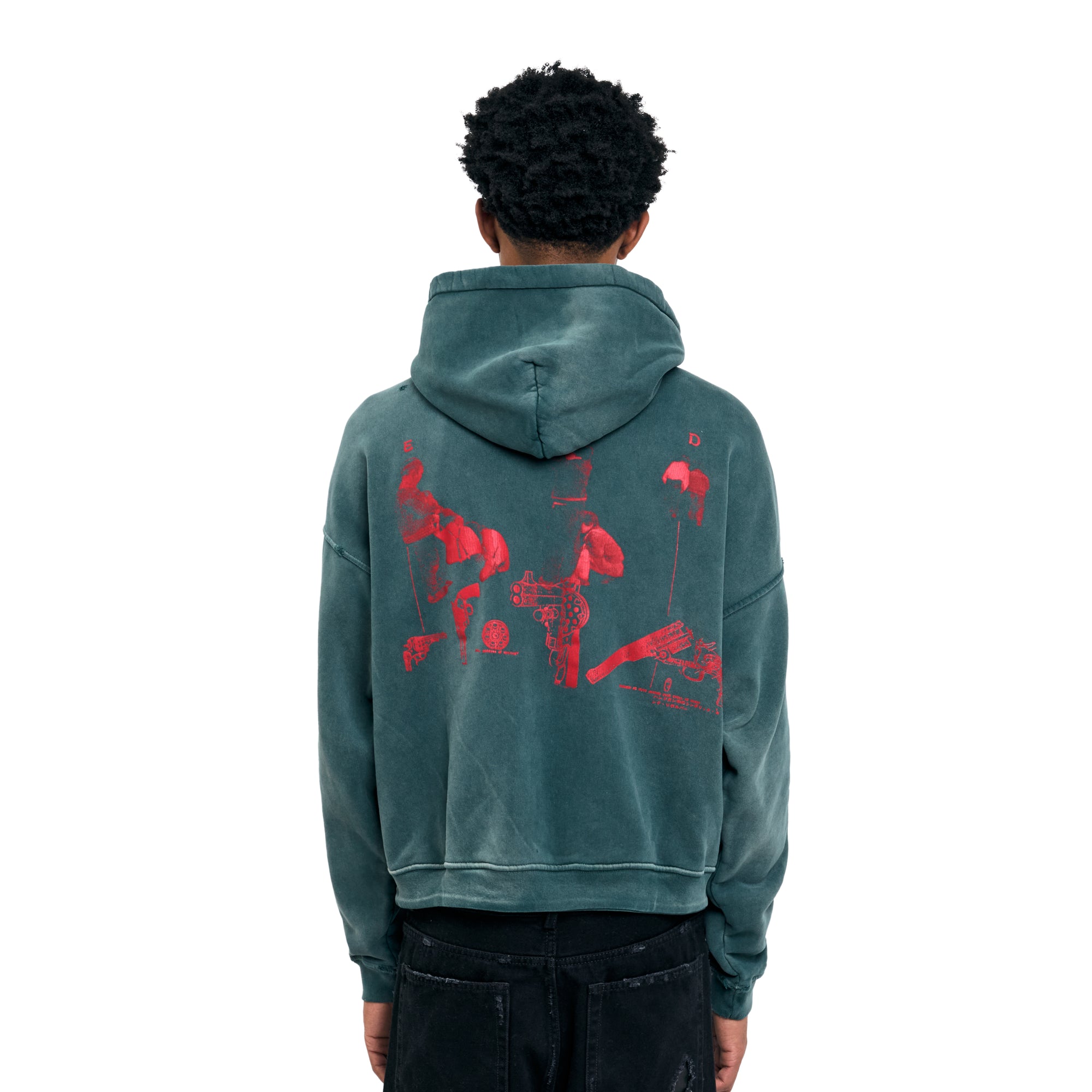 Enfants Riches Déprimés continues its exploration of psychological tension and adolescent unrest through this graphic hoodie. The piece features a washed cotton body with deliberate distressing and a frontal print referencing archival French medical literature. Faded coloration and irregular wear reinforce the brand’s fixation on decay, vulnerability, and the emotional residue of youth.