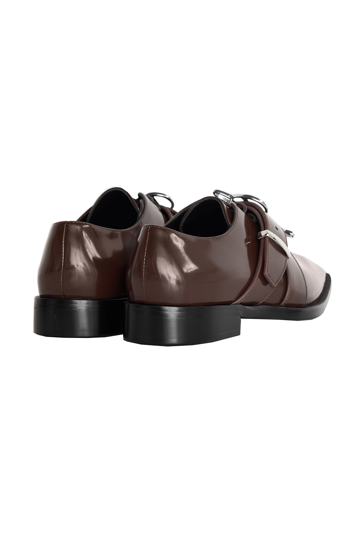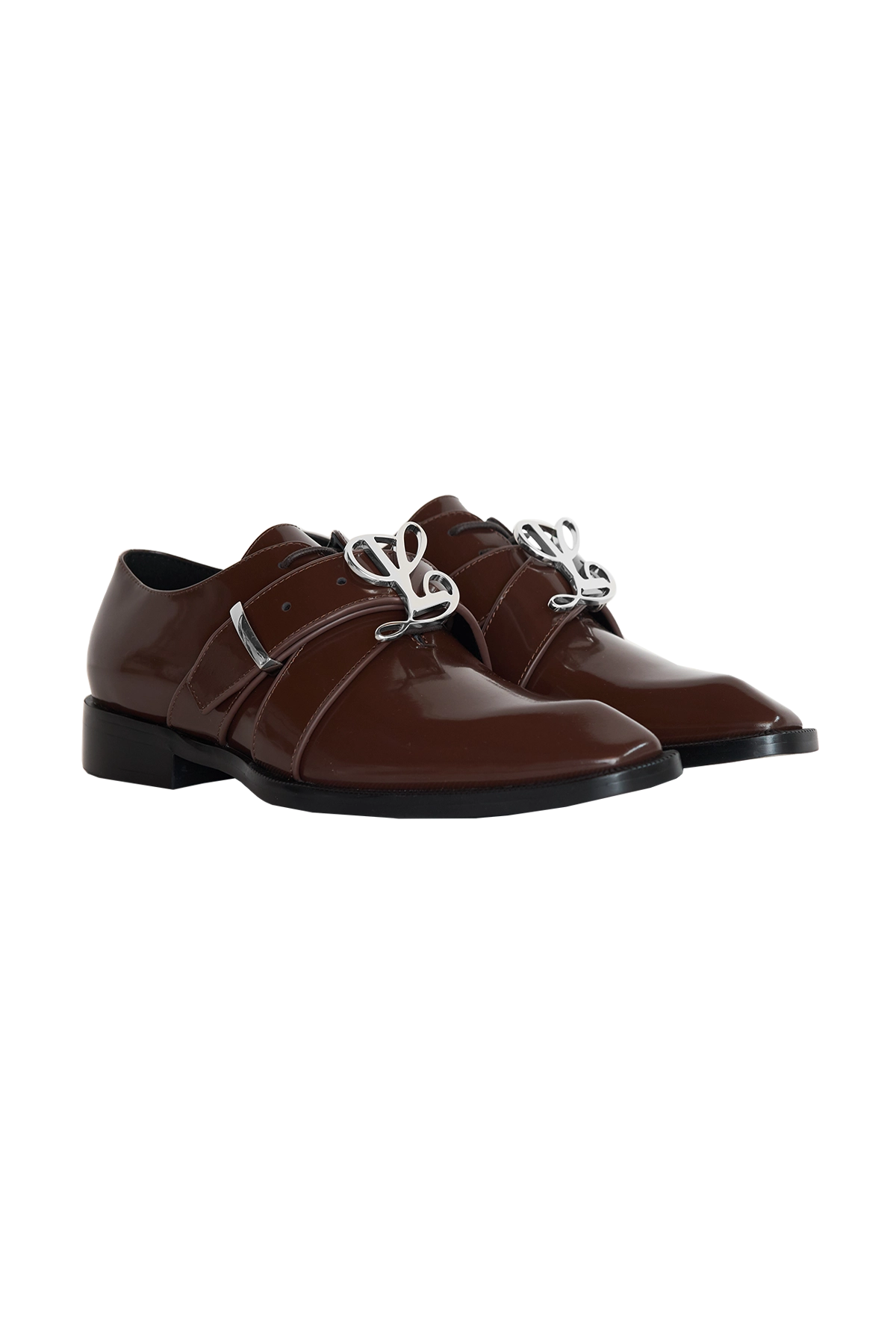 The Luar Adrian Belted Oxfords featuring a derby silhouette, chiseled toe, and a belted vamp with signature Luar L logo buckle in anti-rust stainless steel.
