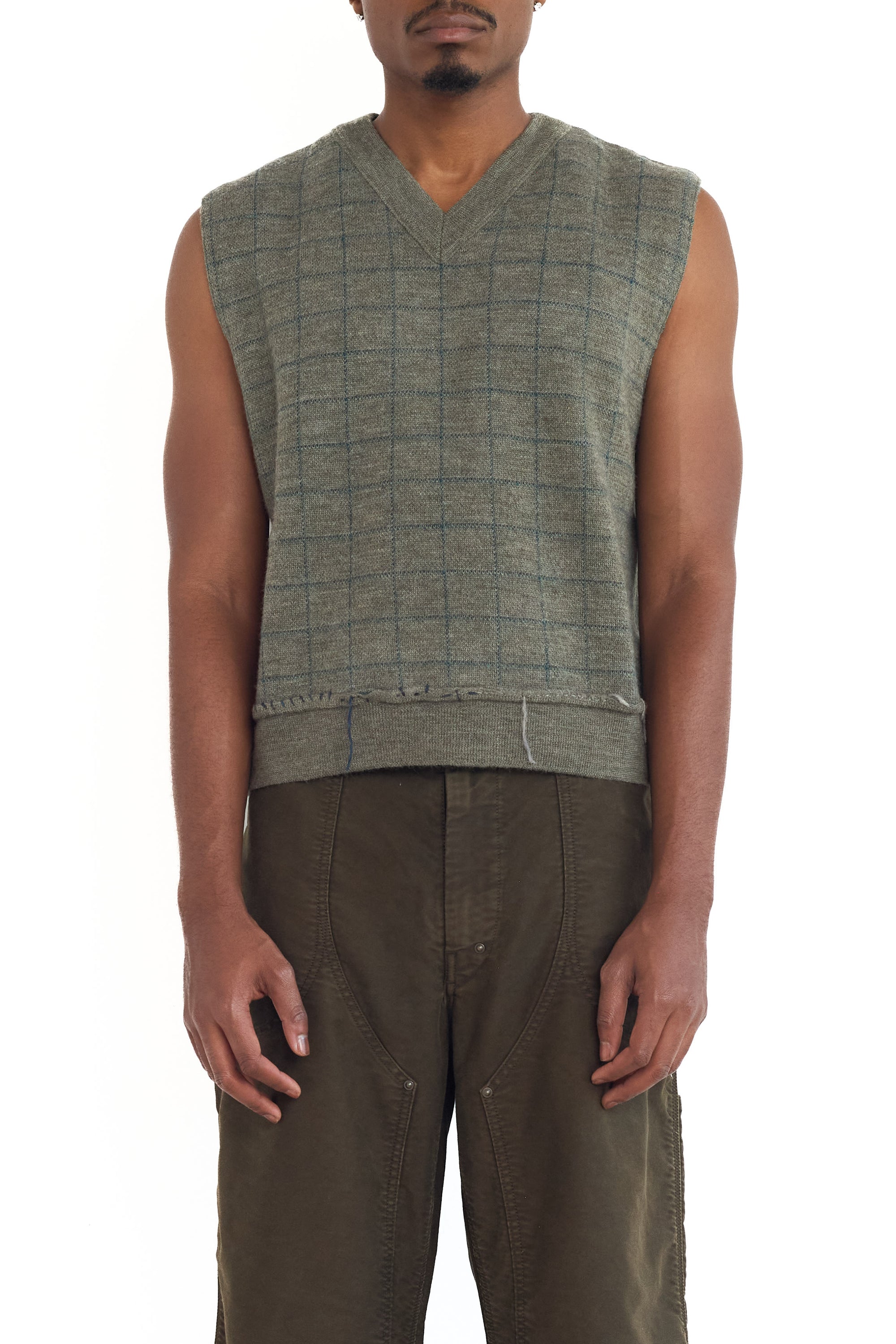 Maison Margiela Check Sleeveless V-Neck Vest Military Green